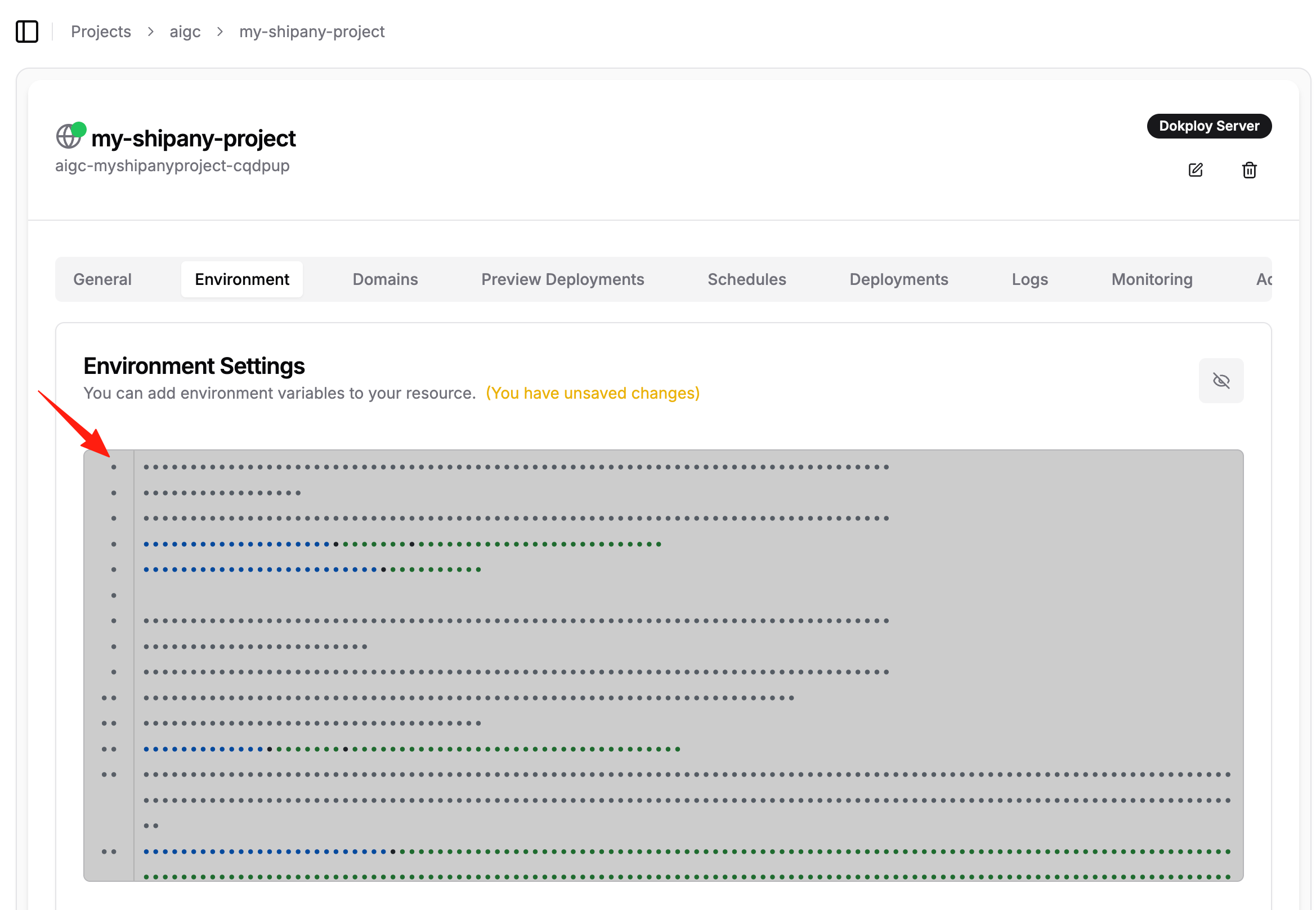 .env.productionfile in the project, paste it into the Environment, and set the environment variables