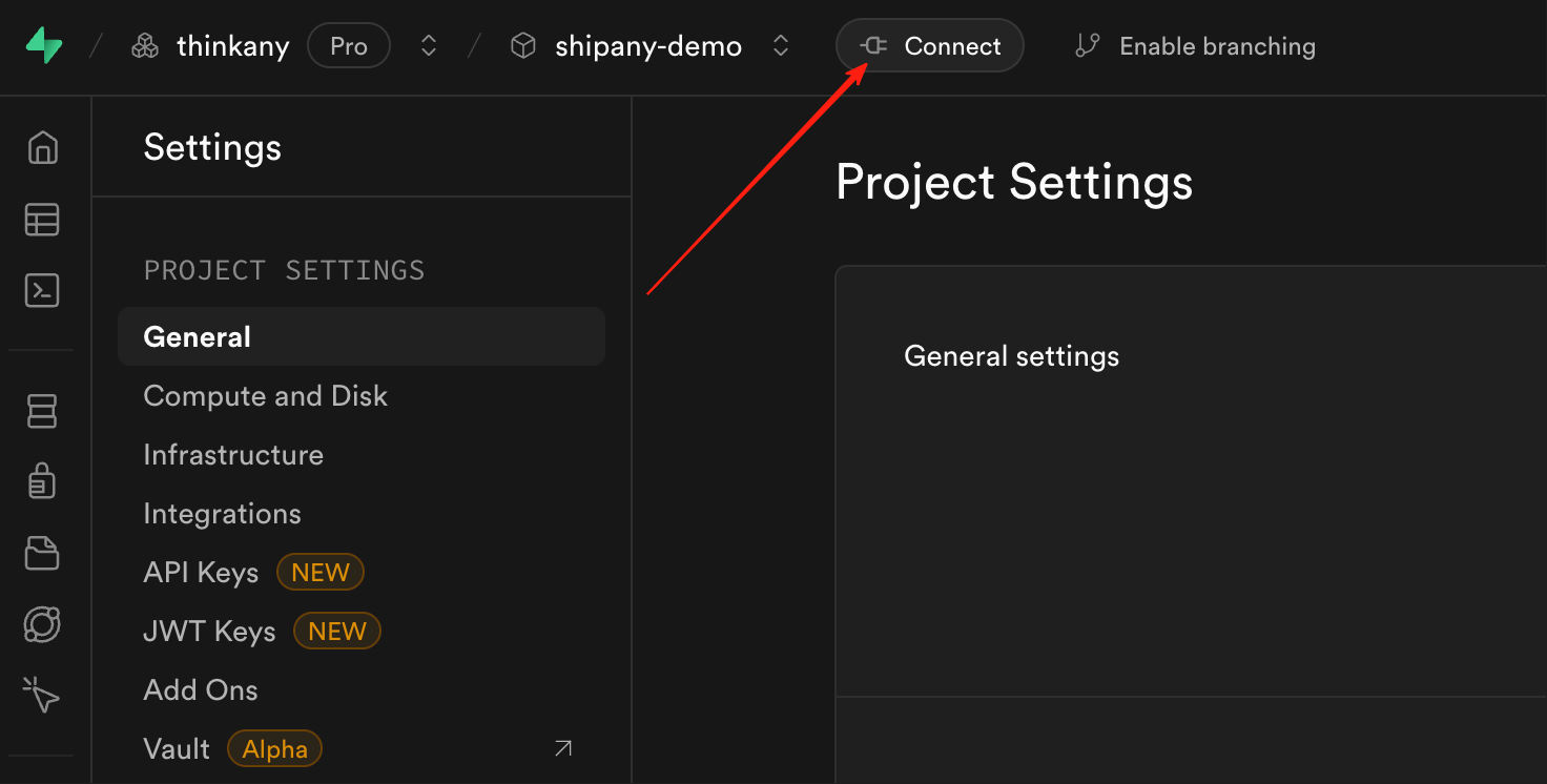 Using Supabase database as an example, the process to configure a database in ShipAny is: